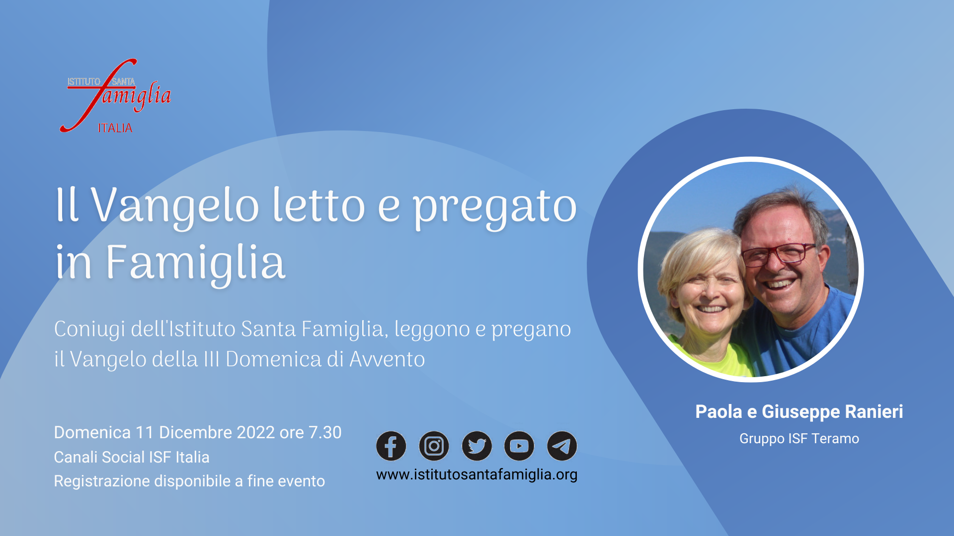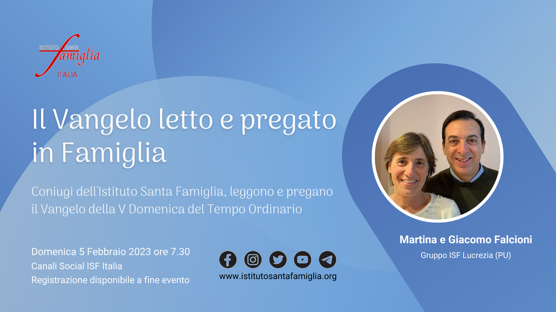 Domenica 5 Febbraio alle ore 21.00, il Santo Rosario della prima Domenica del mese dedicato alla Famiglia, con intenzioni particolari per il momento che stiamo vivendo, trasmesso in diretta sui Canali Social dell'Istituto Santa Famiglia Italia (Facebook, YouTube, Twitter). Invitiamo…